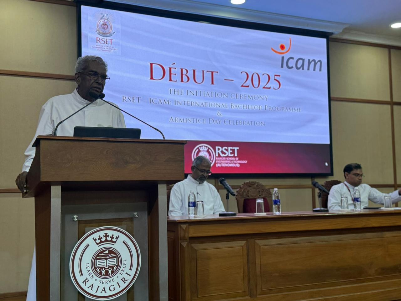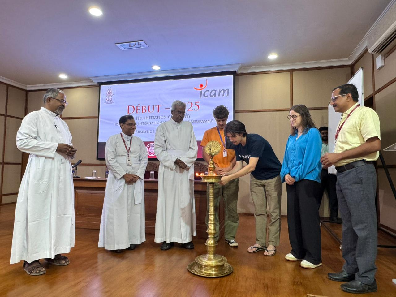 ICAM Students’ Inaugural Ceremony and Armistice Day Celebration – DEBUT 2025 On 12 November 2025, RSET hosted the inaugural ceremony of the international immersion programme “DEBUT 2025” for a group of 18 ICAM students. The event marked the official beginning of their academic and cultural engagement at the institution. The ceremony was graced by the presence of Dr. Jose Kurieath, Director, Rev. Fr. Jaison Paul Mulerikkal CMI, Principal, and Dr. Joel George Pullolil CMI. Their presence highlighted RSET’s dedication to fostering global partnerships and supporting international student exchange initiatives. As part of the day’s programme, the ICAM students also participated in the Armistice Day observance held at RSET. They delivered a meaningful and reflective presentation on the significance of Armistice Day, honouring the values of peace, remembrance, and solidarity. The combined event—DEBUT 2025—provided a rich and memorable beginning to their experience at RSET, blending academic orientation with cultural commemoration.